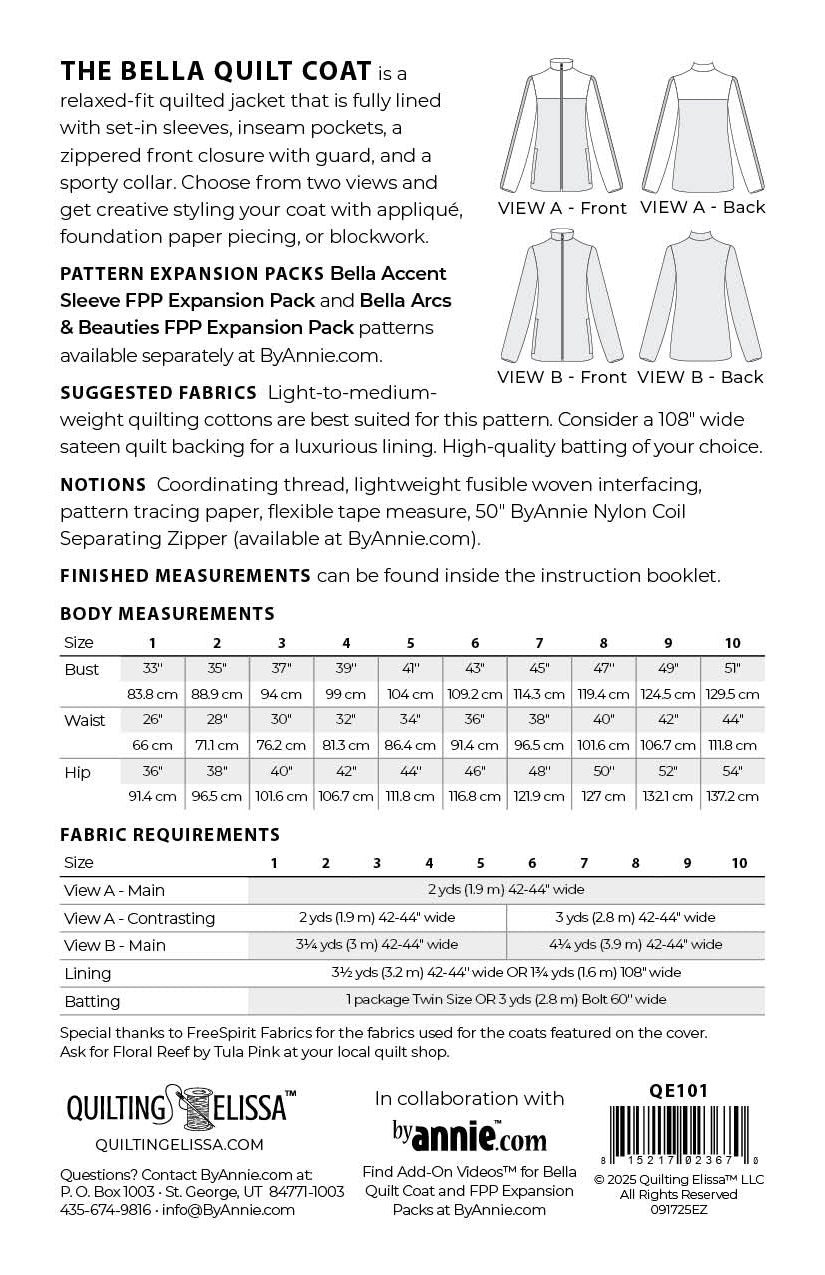 Choose from two views and get creative styling your coat with appliqué, foundation paper piecing, or blockwork.